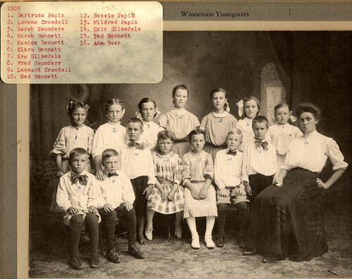 1. Gertrude Papik, 2. Lorena Crandall, 3. Sarah Saunders, 4. Sarah Bennett, 5. Eunice Bennett,