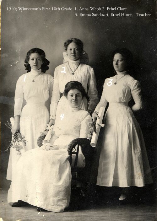 1. Anna Webb, 2. Ethel Clare, 3. Emma Sandoz, 4. Ethel Howe, - Teacher