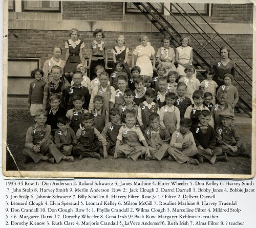 Back Row: 1 Margaret Kehlmeier - teacher, 2. Dorothy Kienow, 3. Ruth Clare,