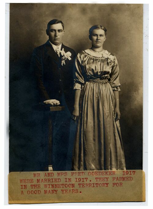 Were married in 1917. They farmed in the Winnetoon territory for a good many years.