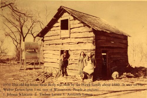 1951, This old log house most likely was built be the Hawk family about 1880.