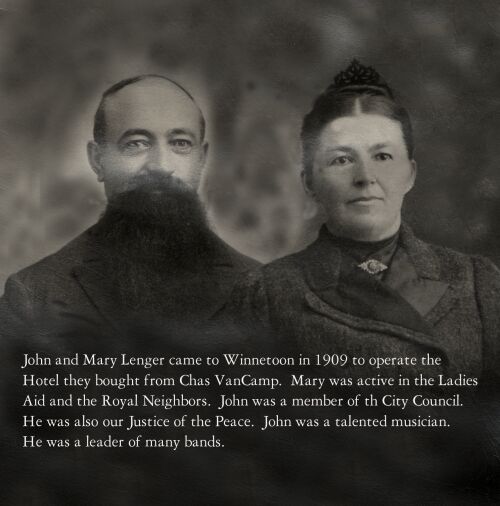 John and Mary Lenger came to Winnetoon in 1909 to operated the Hotel they bought from Chas VanCamp.