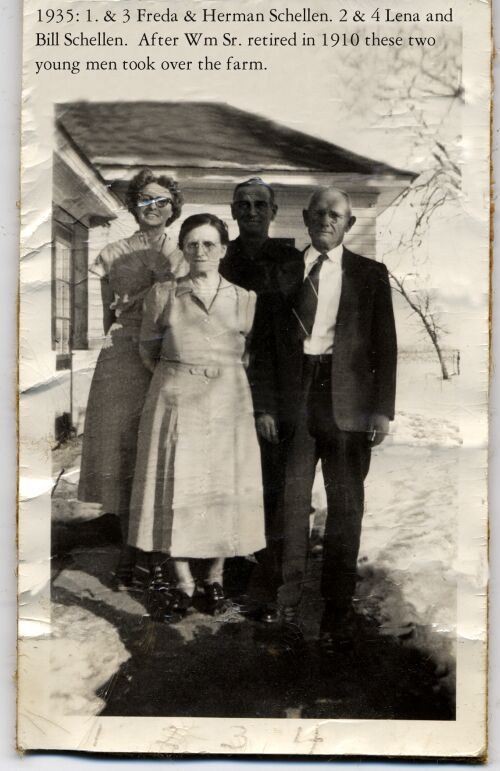 1935: 1. & 3. Freda and Herman Schellen. 2. & 4. Lena and Bill Schellen.