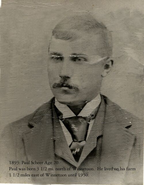 11893, Paul Scheer age 20. Paul was born 3 1/2 mi. north of Winnetoon.