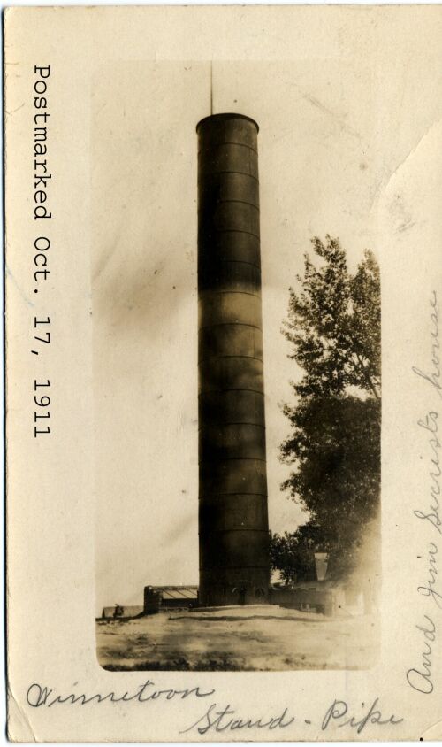 Winnetoon's Stand-Pipe and Jim Secrist's house. Postmarked Oct. 17, 1911.